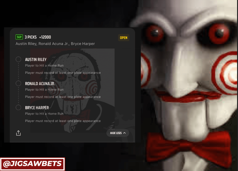 10/12 MLB SGP Discover more from JigsawBets Subscribe to get the latest posts sent to your email. Type your email… Subscribe Share this: Share on X (Opens in new window) X Share on Facebook (Opens in new window) Facebook Like Loading... Related