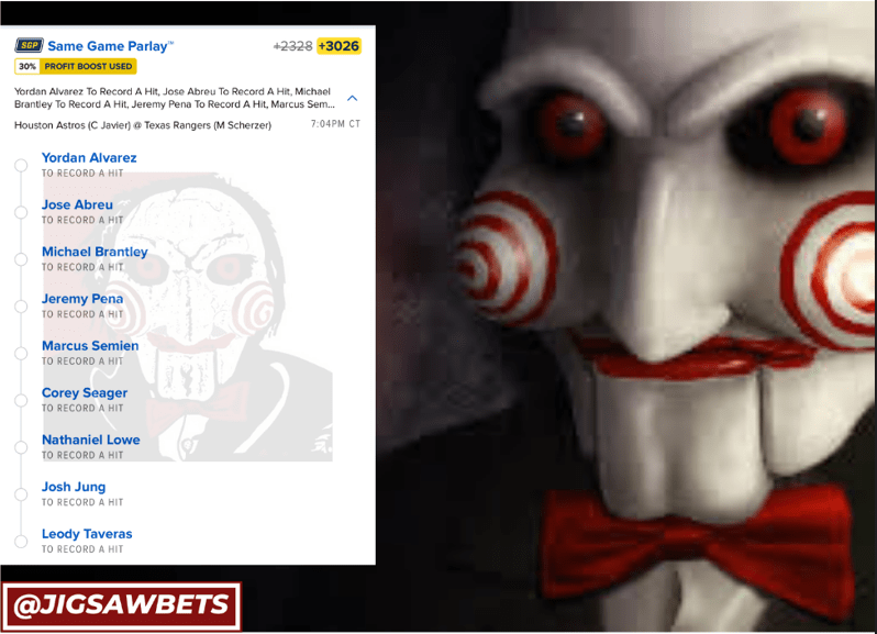 10/18 MLB SGPs Discover more from JigsawBets Subscribe to get the latest posts sent to your email. Type your email… Subscribe Share this: Share on X (Opens in new window) X Share on Facebook (Opens in new window) Facebook Like Loading... Related