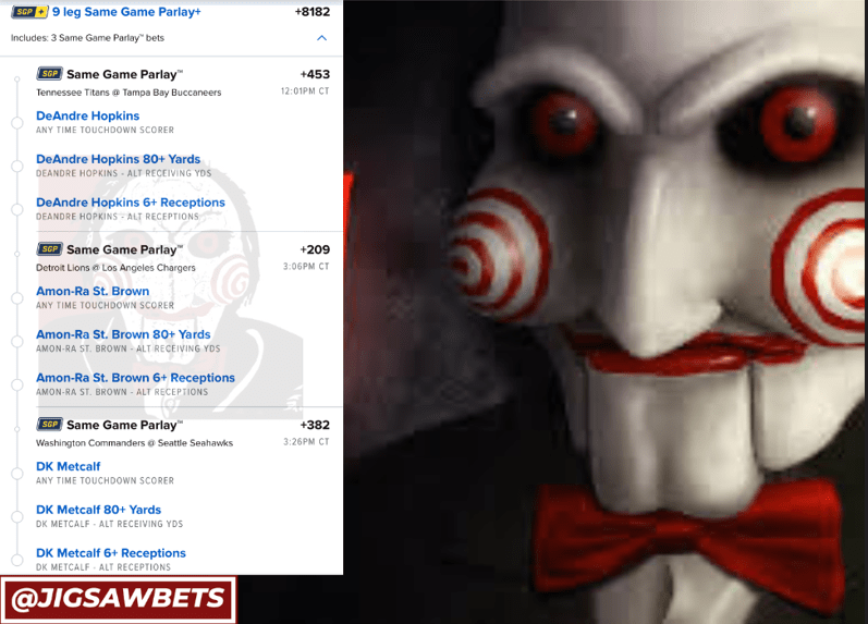 11/12 NFL Parlays Discover more from JigsawBets Subscribe to get the latest posts sent to your email. Type your email… Subscribe Share this: Share on X (Opens in new window) X Share on Facebook (Opens in new window) Facebook Like Loading... Related