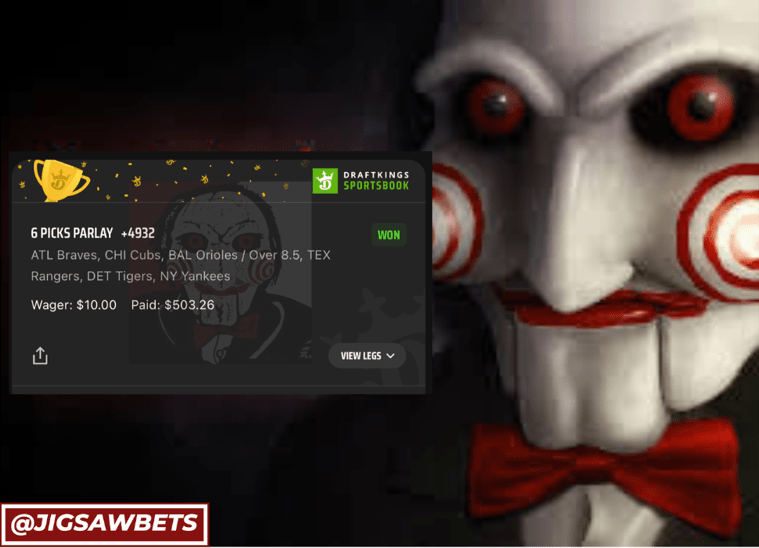 4/1 MLB Parlay Hit Discover more from JigsawBets Subscribe to get the latest posts sent to your email. Type your email… Subscribe Share this: Share on X (Opens in new window) X Share on Facebook (Opens in new window) Facebook Like Loading... Related