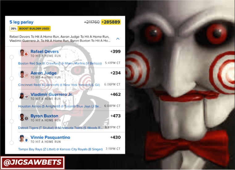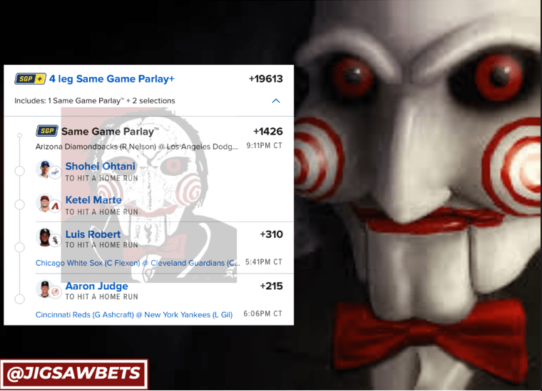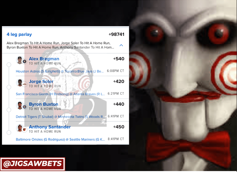 7/2 HR Parlays Discover more from JigsawBets Subscribe to get the latest posts sent to your email. Type your email… Subscribe Share this: Share on X (Opens in new window) X Share on Facebook (Opens in new window) Facebook Like Loading... Related