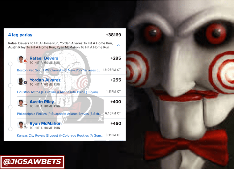 7/6 HR Parlays Discover more from JigsawBets Subscribe to get the latest posts sent to your email. Type your email… Subscribe Share this: Share on X (Opens in new window) X Share on Facebook (Opens in new window) Facebook Like Loading... Related