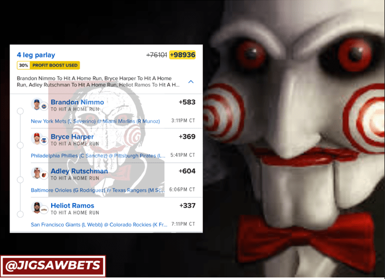 7/20 HR Parlays Discover more from JigsawBets Subscribe to get the latest posts sent to your email. Type your email… Subscribe Share this: Share on X (Opens in new window) X Share on Facebook (Opens in new window) Facebook Like Loading... Related