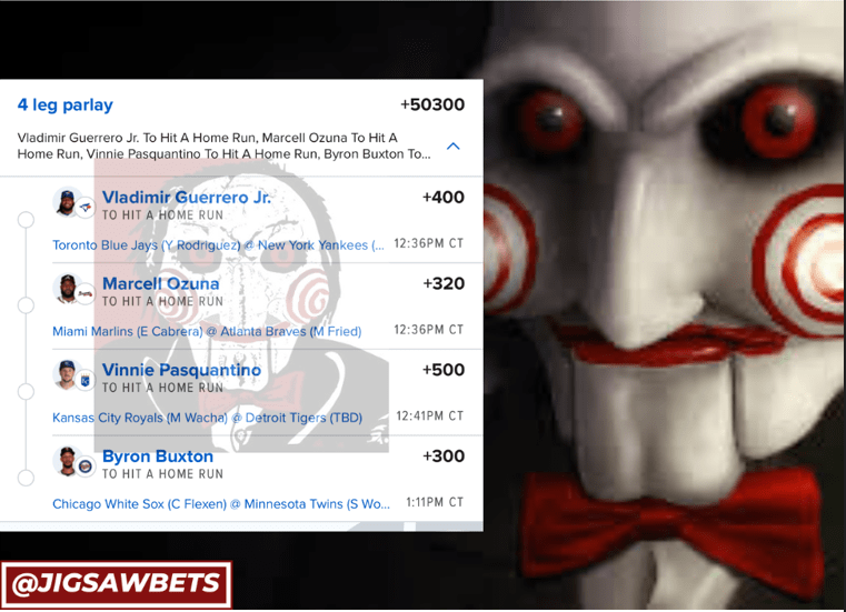 8/4 HR Parlay Discover more from JigsawBets Subscribe to get the latest posts sent to your email. Type your email… Subscribe Share this: Share on X (Opens in new window) X Share on Facebook (Opens in new window) Facebook Like Loading... Related