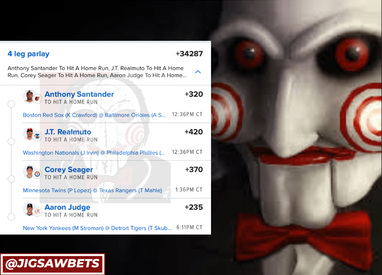 8/18 HR Parlays Discover more from JigsawBets Subscribe to get the latest posts sent to your email. Type your email… Subscribe Share this: Share on X (Opens in new window) X Share on Facebook (Opens in new window) Facebook Like Loading... Related