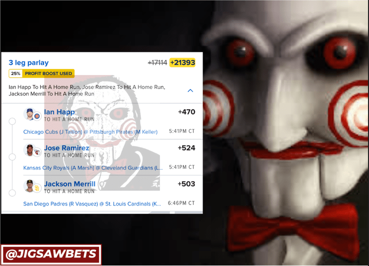 8/26 HR Parlay Discover more from JigsawBets Subscribe to get the latest posts sent to your email. Type your email… Subscribe Share this: Share on X (Opens in new window) X Share on Facebook (Opens in new window) Facebook Like Loading... Related