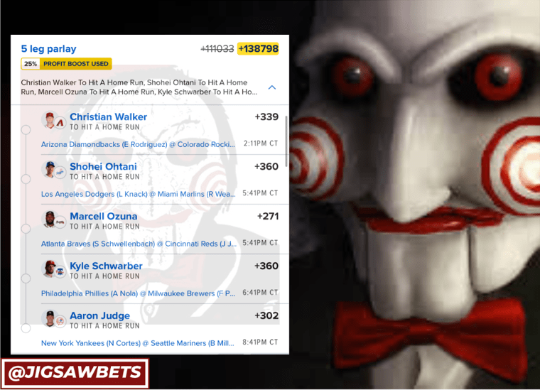 9/18 HR Parlay Discover more from JigsawBets Subscribe to get the latest posts sent to your email. Type your email… Subscribe Share this: Share on X (Opens in new window) X Share on Facebook (Opens in new window) Facebook Like Loading... Related