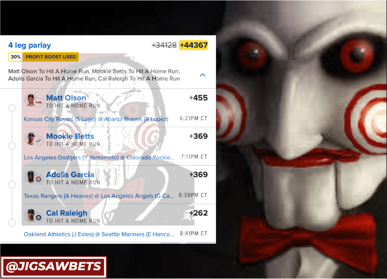 9/28 HR Parlays Discover more from JigsawBets Subscribe to get the latest posts sent to your email. Type your email… Subscribe Share this: Share on X (Opens in new window) X Share on Facebook (Opens in new window) Facebook Like Loading... Related