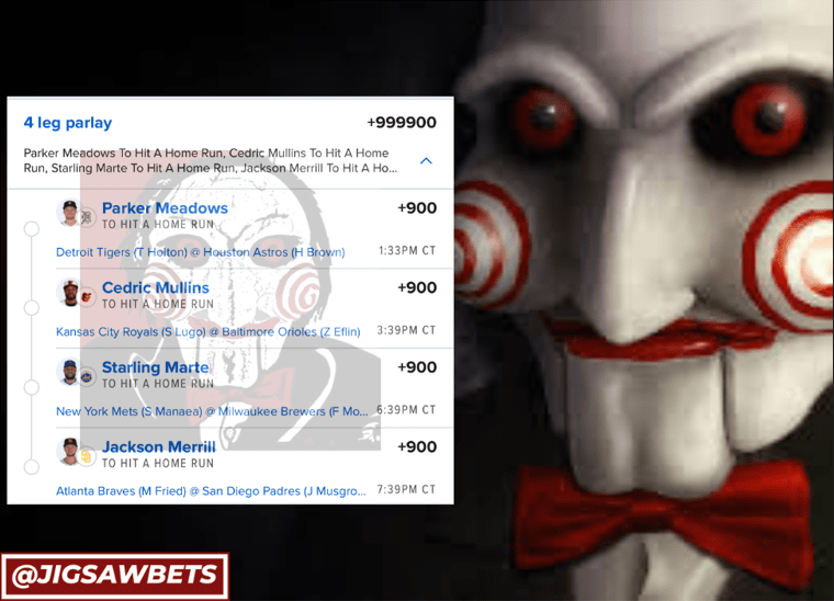 10/2 HR Parlays Discover more from JigsawBets Subscribe to get the latest posts sent to your email. Type your email… Subscribe Share this: Share on X (Opens in new window) X Share on Facebook (Opens in new window) Facebook Like Loading... Related
