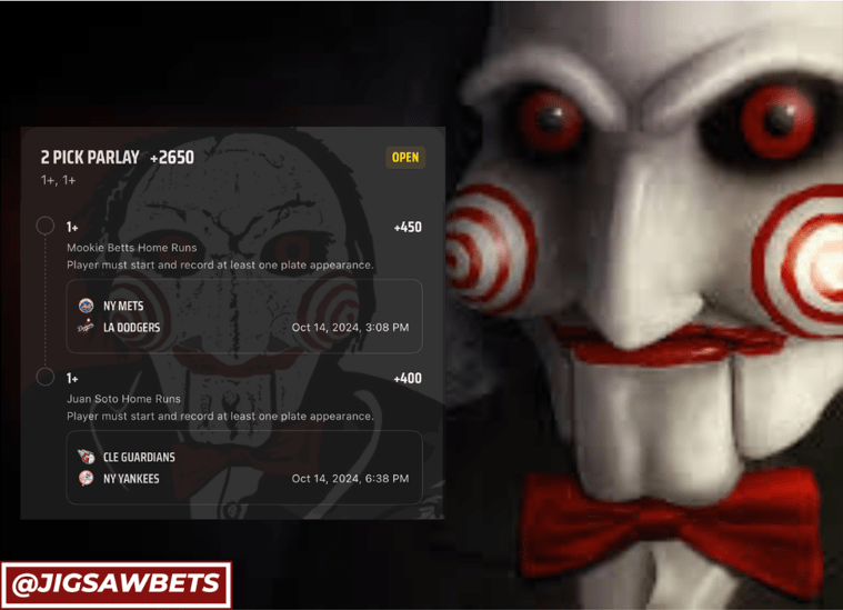 10/14 HR Parlay Discover more from JigsawBets Subscribe to get the latest posts sent to your email. Type your email… Subscribe Share this: Share on X (Opens in new window) X Share on Facebook (Opens in new window) Facebook Like Loading... Related