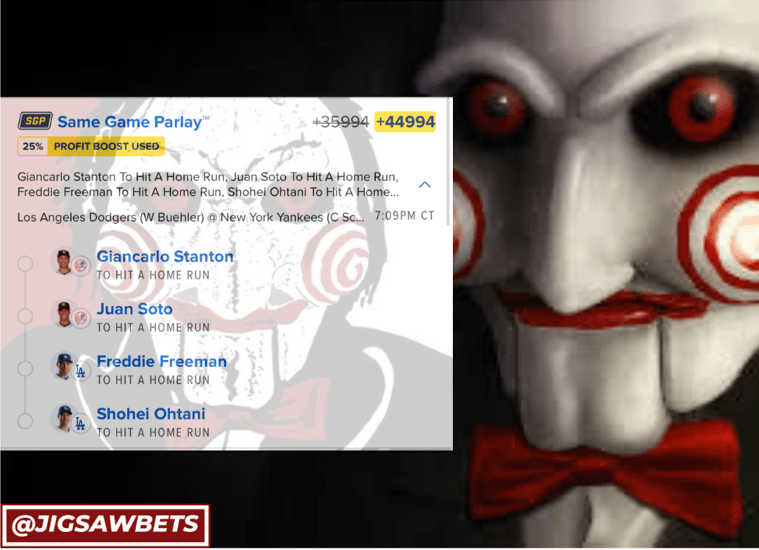 10/28 HR Parlay Discover more from JigsawBets Subscribe to get the latest posts sent to your email. Type your email… Subscribe Share this: Share on X (Opens in new window) X Share on Facebook (Opens in new window) Facebook Like Loading... Related