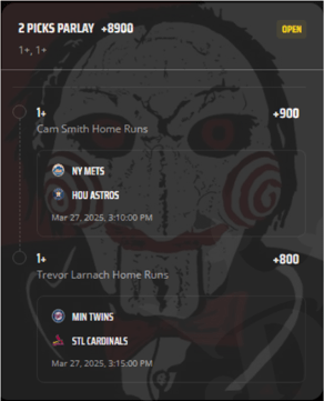 3/27 HR Parlays Discover more from JigsawBets Subscribe to get the latest posts sent to your email. Type your email… Subscribe Share this: Share on X (Opens in new window) X Share on Facebook (Opens in new window) Facebook Like Loading... Related