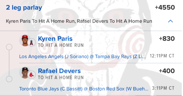 4/10 HR Parlay Discover more from JigsawBets Subscribe to get the latest posts sent to your email. Type your email… Subscribe Share this: Share on X (Opens in new window) X Share on Facebook (Opens in new window) Facebook Like Loading... Related