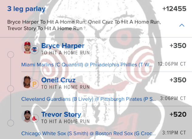 4/19 HR Parlay Discover more from JigsawBets Subscribe to get the latest posts sent to your email. Type your email… Subscribe Share this: Share on X (Opens in new window) X Share on Facebook (Opens in new window) Facebook Like Loading... Related