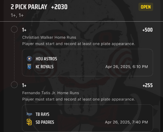 4/26 HR Parlays Discover more from JigsawBets Subscribe to get the latest posts sent to your email. Type your email… Subscribe Share this: Share on X (Opens in new window) X Share on Facebook (Opens in new window) Facebook Like Loading... Related