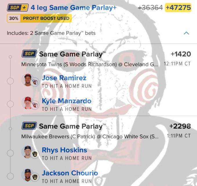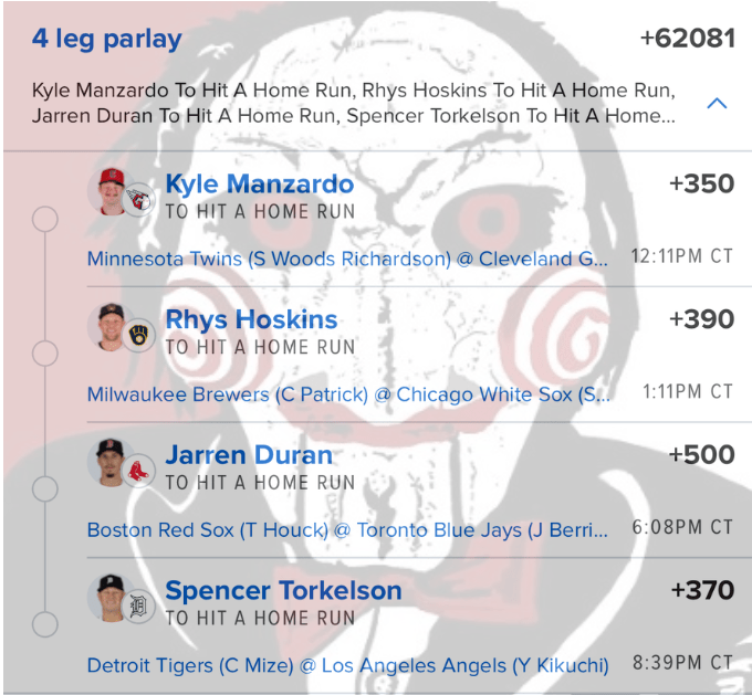 5/1 HR Parlays Discover more from JigsawBets Subscribe to get the latest posts sent to your email. Type your email… Subscribe Share this: Share on X (Opens in new window) X Share on Facebook (Opens in new window) Facebook Like Loading... Related
