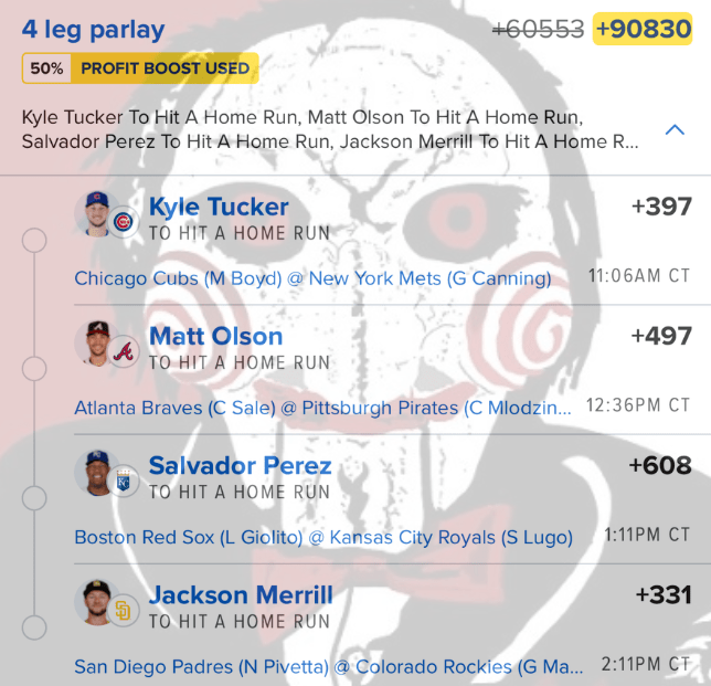 5/11 HR Parlay Discover more from JigsawBets Subscribe to get the latest posts sent to your email. Type your email… Subscribe Share this: Share on X (Opens in new window) X Share on Facebook (Opens in new window) Facebook Like Loading... Related
