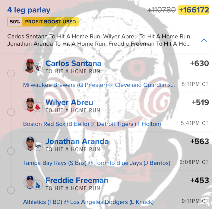 5/13 HR Parlay Discover more from JigsawBets Subscribe to get the latest posts sent to your email. Type your email… Subscribe Share this: Share on X (Opens in new window) X Share on Facebook (Opens in new window) Facebook Like Loading... Related