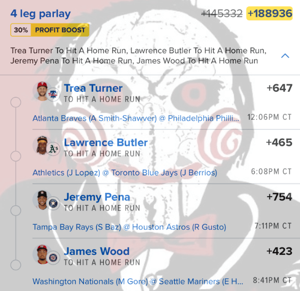5/29 HR Parlay Discover more from JigsawBets Subscribe to get the latest posts sent to your email. Type your email… Subscribe Share this: Share on X (Opens in new window) X Share on Facebook (Opens in new window) Facebook Like Loading... Related