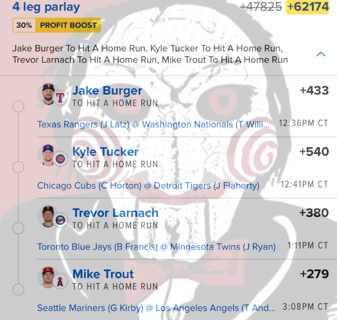 6/8 HR Parlay Discover more from JigsawBets Subscribe to get the latest posts sent to your email. Type your email… Subscribe Share this: Share on X (Opens in new window) X Share on Facebook (Opens in new window) Facebook Like Loading... Related