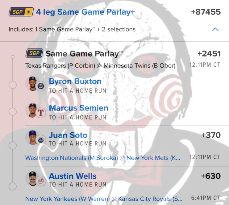 6/12 HR Parlay Discover more from JigsawBets Subscribe to get the latest posts sent to your email. Type your email… Subscribe Share this: Share on X (Opens in new window) X Share on Facebook (Opens in new window) Facebook Like Loading... Related