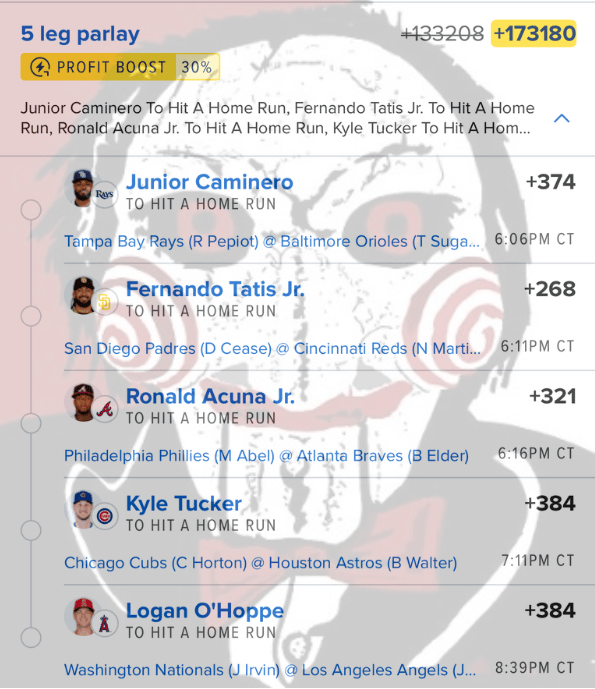 6/27 HR Parlay Discover more from JigsawBets Subscribe to get the latest posts sent to your email. Type your email… Subscribe Share this: Share on X (Opens in new window) X Share on Facebook (Opens in new window) Facebook Like Loading... Related
