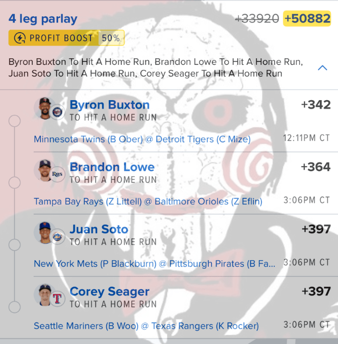 6/28 HR Parlay Discover more from JigsawBets Subscribe to get the latest posts sent to your email. Type your email… Subscribe Share this: Share on X (Opens in new window) X Share on Facebook (Opens in new window) Facebook Like Loading... Related