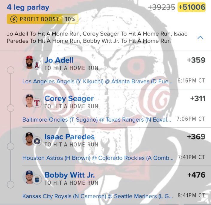 7/2 HR Parlay Discover more from JigsawBets Subscribe to get the latest posts sent to your email. Type your email… Subscribe Share this: Share on X (Opens in new window) X Share on Facebook (Opens in new window) Facebook Like Loading... Related