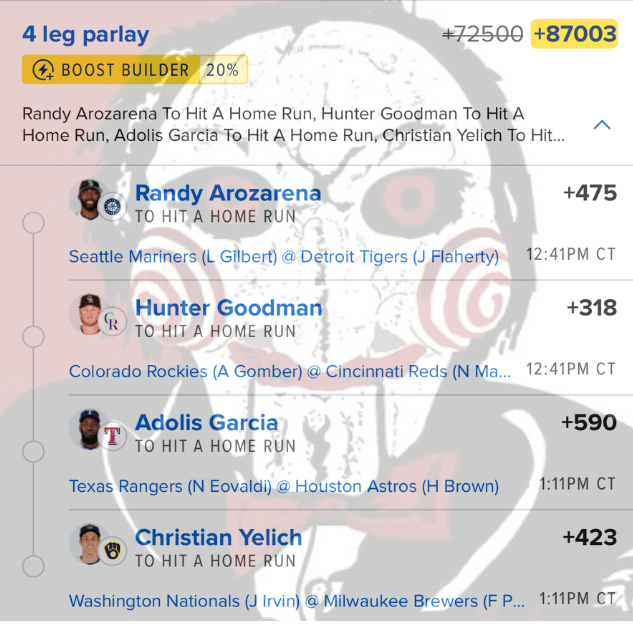 7/13 HR Parlay Discover more from JigsawBets Subscribe to get the latest posts sent to your email. Type your email… Subscribe Share this: Share on X (Opens in new window) X Share on Facebook (Opens in new window) Facebook Like Loading... Related