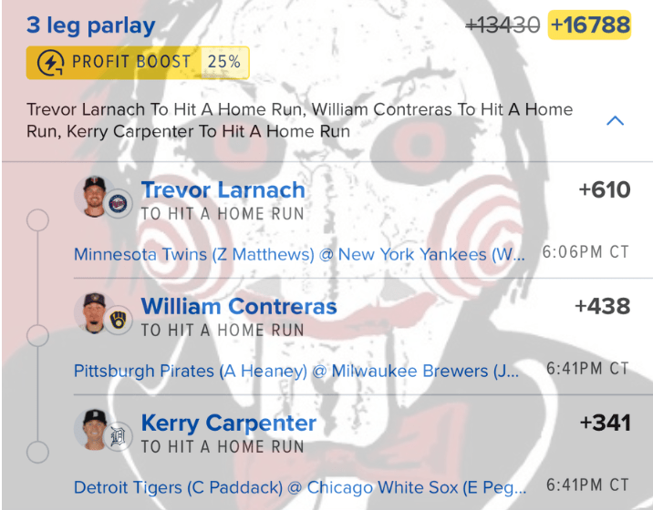8/11 HR Parlay Discover more from JigsawBets Subscribe to get the latest posts sent to your email. Type your email… Subscribe Share this: Share on X (Opens in new window) X Share on Facebook (Opens in new window) Facebook Like Loading... Related