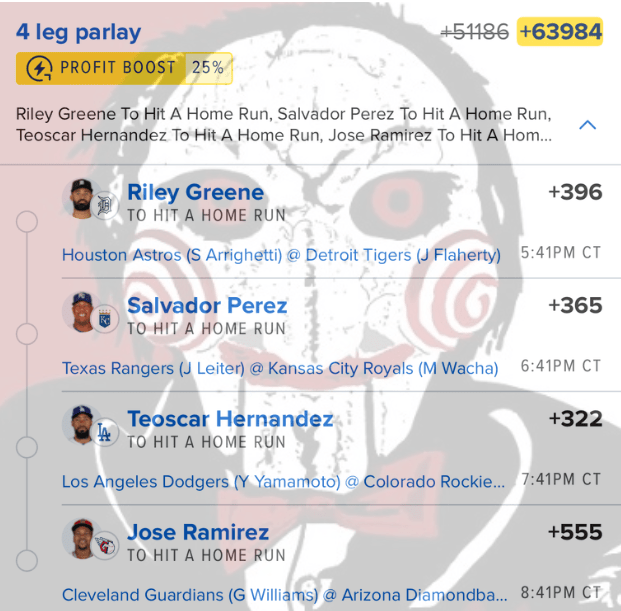 8/18 HR Parlay Discover more from JigsawBets Subscribe to get the latest posts sent to your email. Type your email… Subscribe Share this: Share on X (Opens in new window) X Share on Facebook (Opens in new window) Facebook Like Loading... Related