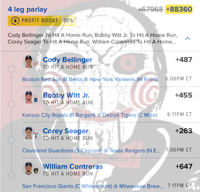 8/22 HR Parlay Discover more from JigsawBets Subscribe to get the latest posts sent to your email. Type your email… Subscribe Share this: Share on X (Opens in new window) X Share on Facebook (Opens in new window) Facebook Like Loading... Related