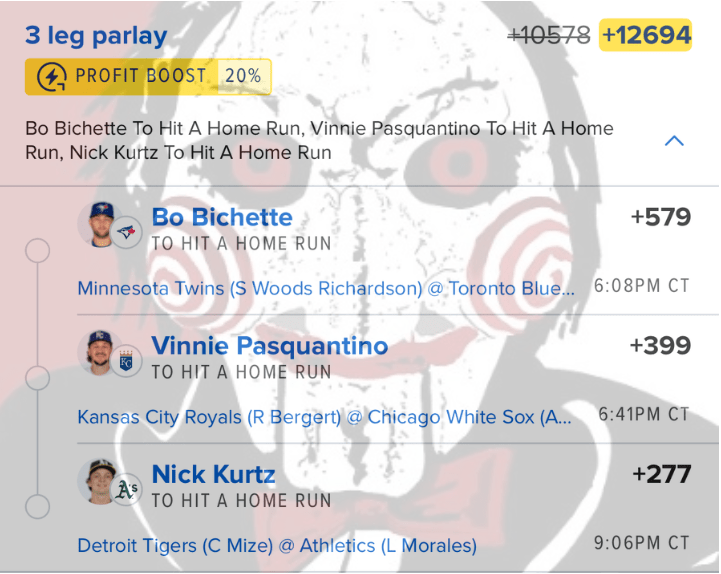 8/27 HR Parlay Discover more from JigsawBets Subscribe to get the latest posts sent to your email. Type your email… Subscribe Share this: Share on X (Opens in new window) X Share on Facebook (Opens in new window) Facebook Like Loading... Related