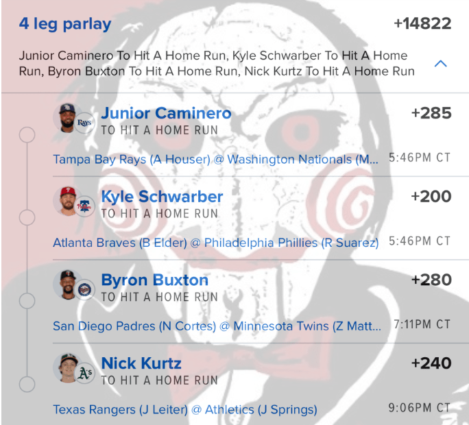 8/29 HR Parlay Discover more from JigsawBets Subscribe to get the latest posts sent to your email. Type your email… Subscribe Share this: Share on X (Opens in new window) X Share on Facebook (Opens in new window) Facebook Like Loading... Related