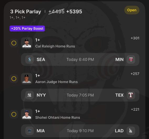 4/27 HR Parlay Discover more from JigsawBets Subscribe to get the latest posts sent to your email. Type your email… Subscribe Share this: Share on X (Opens in new window) X Share on Facebook (Opens in new window) Facebook Like Loading... Related
